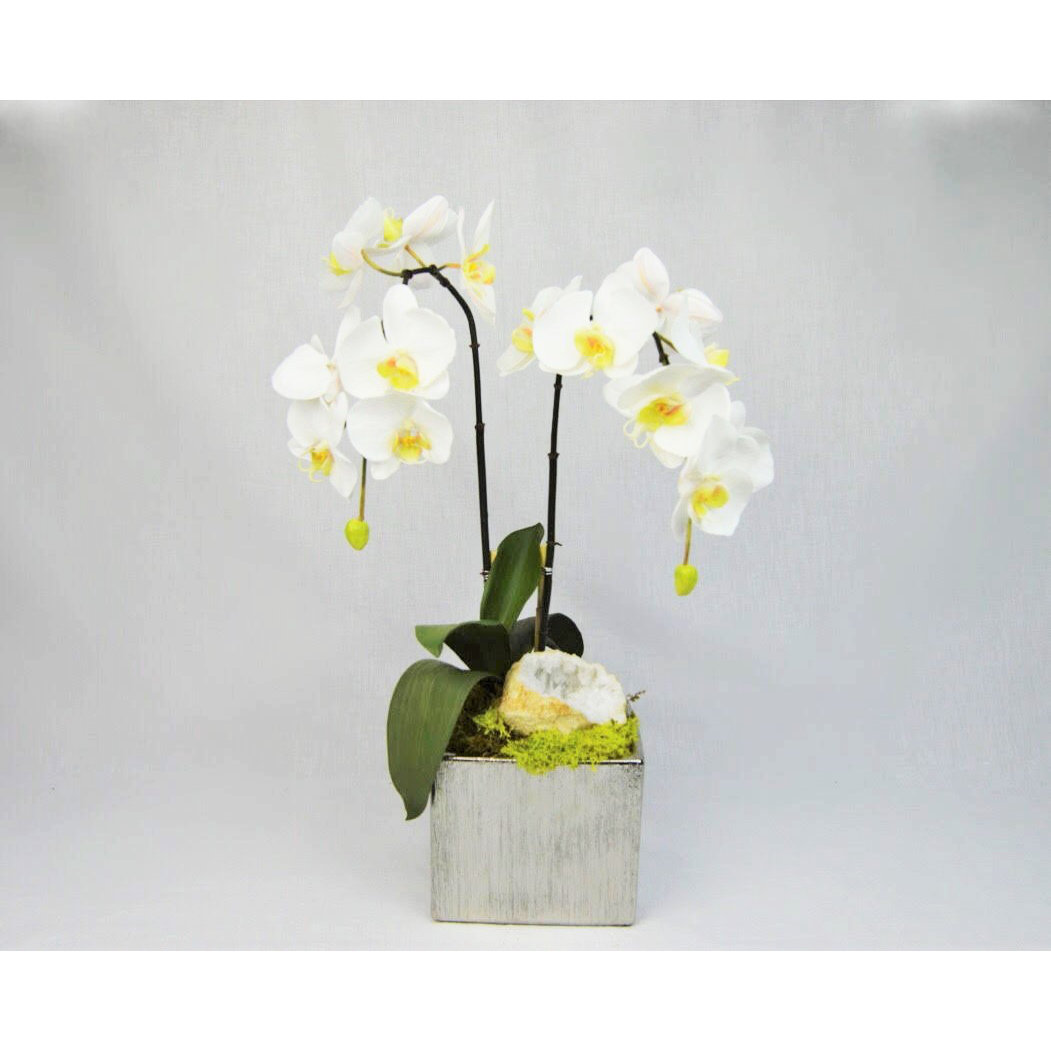 Tc Floral Company Orchid In Square Container With Quartz Color White