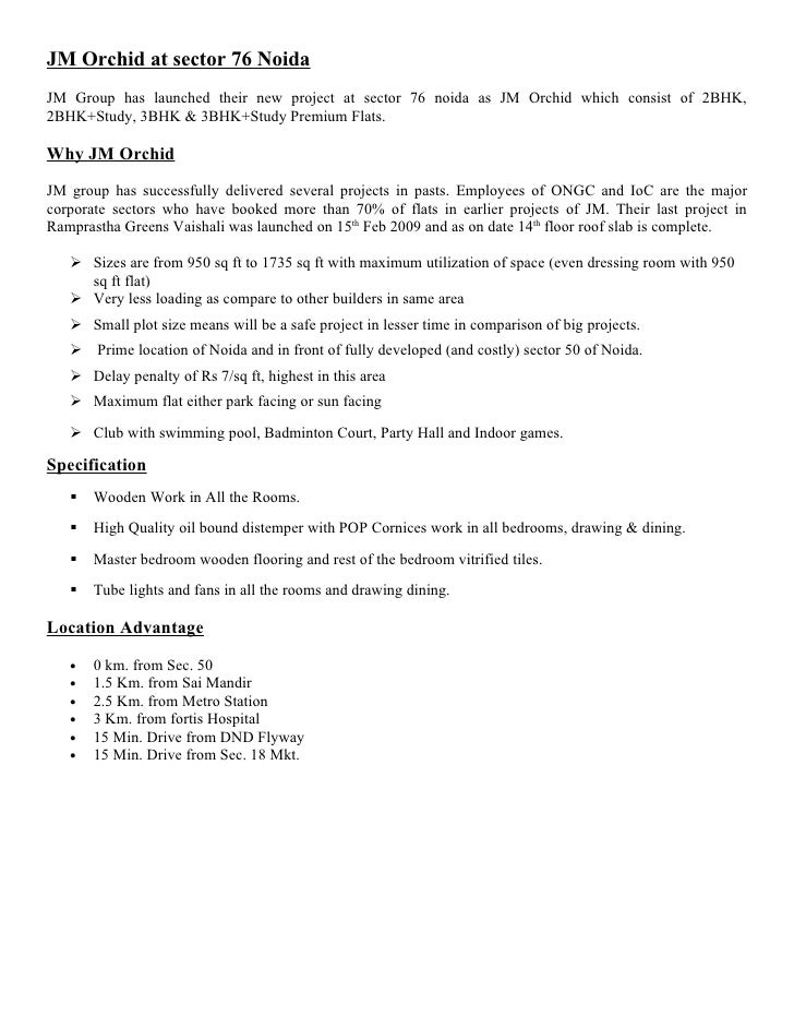 Jm Orchid Sector 76 Noida Call At 9250468704