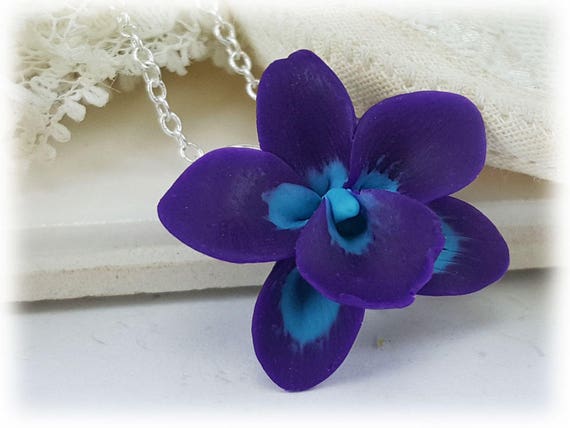 Purple Blue Orchid Necklace Purple Orchid Jewelry Purple Etsy