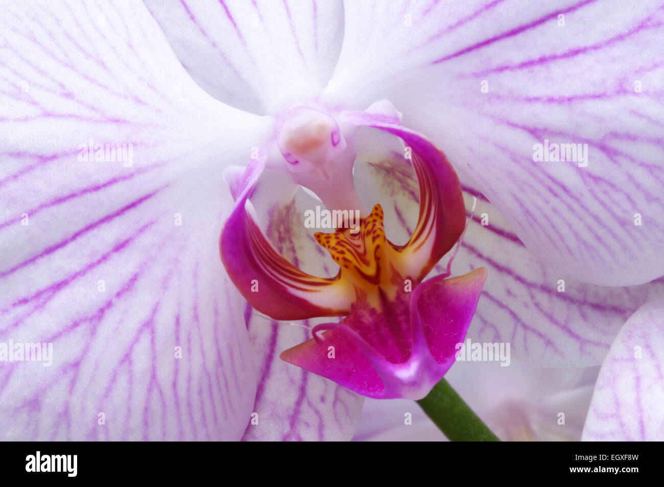 Macro Shot Of Pink Veined Phalaenopsis Moth Orchid Flower Showing