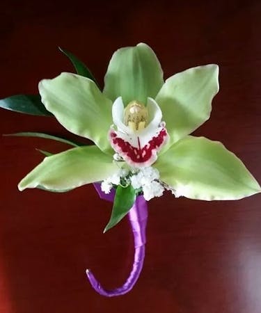 Green Cymbidium Orchid Boutonniere W Custom Stem Wrap