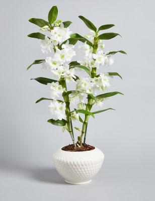 Buy the white dendrobium orchid house plant from marks and spencers range.