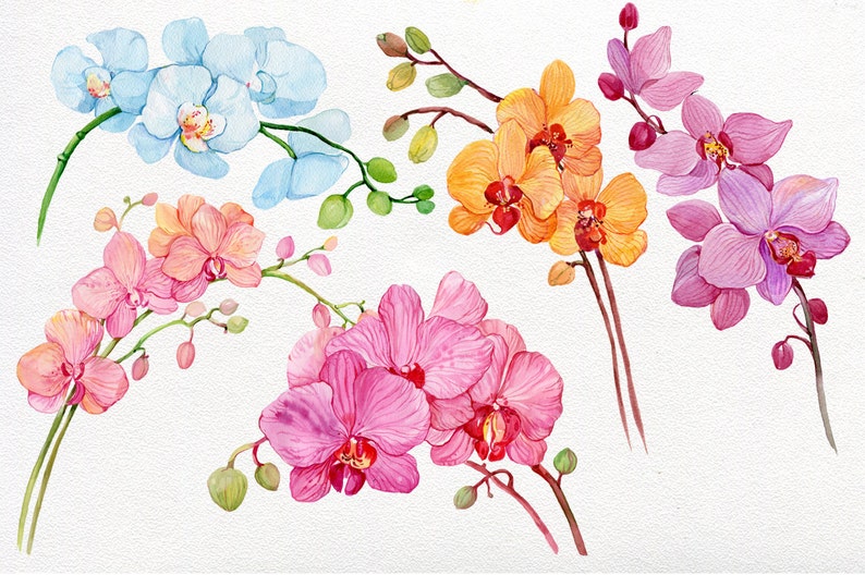 Orchid Watercolor Clipart 5 Branches Of Orchidswatercolor Etsy